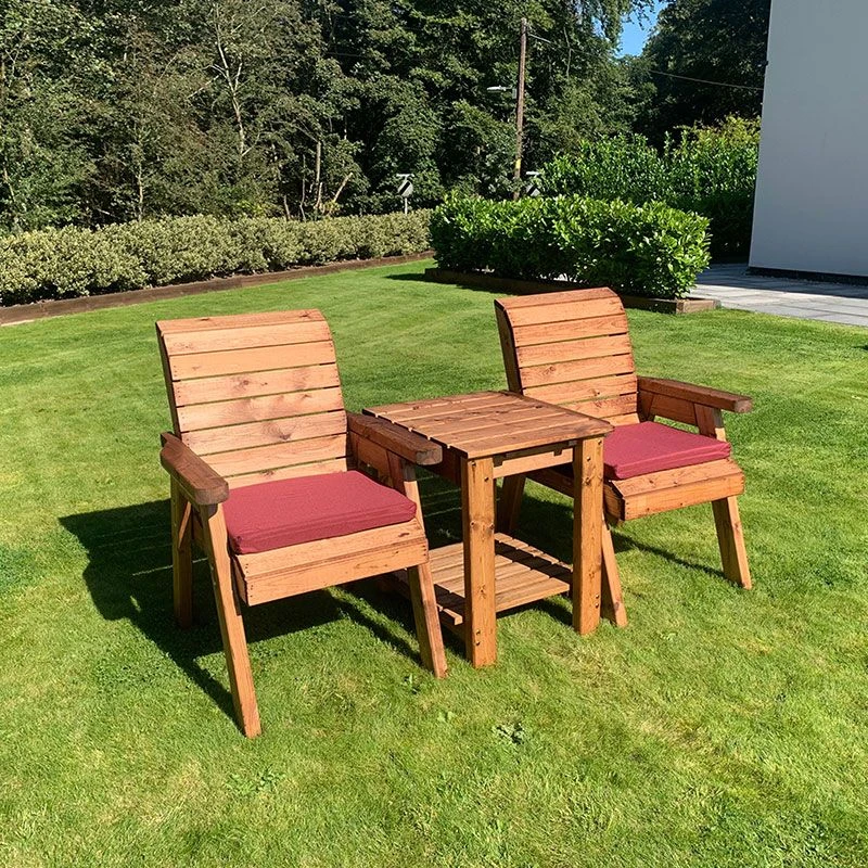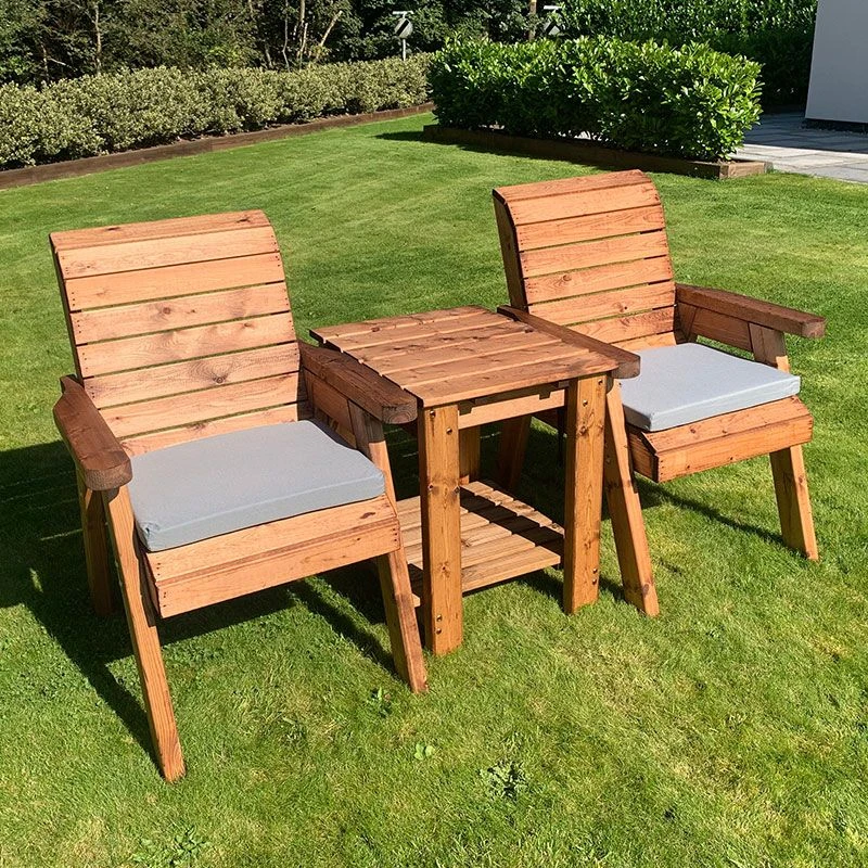 The Charles Taylor Deluxe Companion Set is the perfect addition to your garden for those weekend chats and long summer evenings. The convenient table is detachable and is the perfect height for holding your drinks, mobile devices, or books. It’s also perfect for enjoying a meal or for keeping your snacks out of reach of greedy pets. The two chairs are designed with ergonomic comfort in mind, and the set is available with different coloured soft furnishings to choose from.