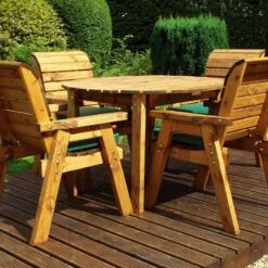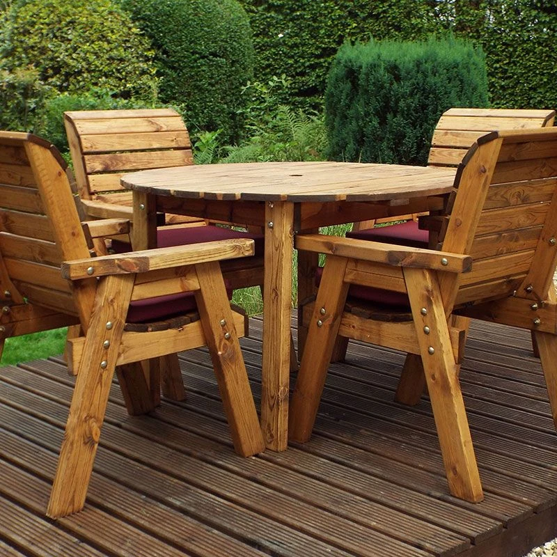 Designed with comfort and functionality in mind. The Charles Taylor Four Seater Round Table Set uses sustainable, slow-grown, pre-treated Scandinavian Redwood. The oil-based preservative protects the wood, and zinc fixings prevent rusting. Charles Taylor provide a 10-year rot-free guarantee, showing their commitment to their promise.
