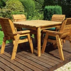 Designed with comfort and functionality in mind. The Charles Taylor Four Seater Square Table Set uses sustainable, slow-grown, pre-treated Scandinavian Redwood. The oil-based preservative protects the wood, and zinc fixings prevent rusting. Charles Taylor provide a 10-year rot-free guarantee, showing their commitment to their promise.