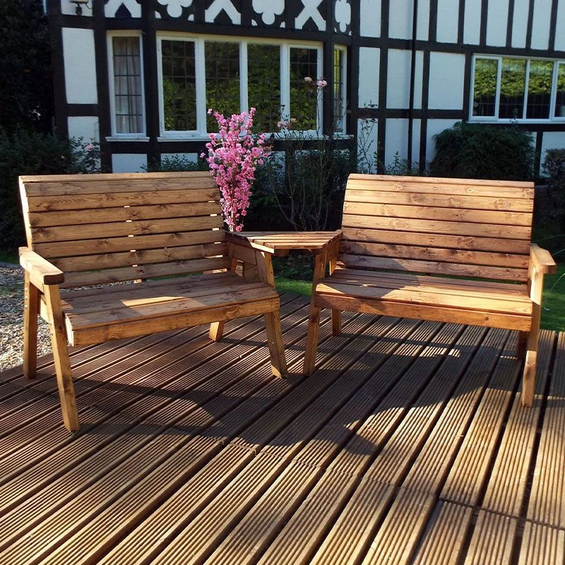 Charles Taylor’s Twin Bench Set Angled is perfect for people who want a comfortable place to relax with plenty of space for you and your family, or pets, in the garden.