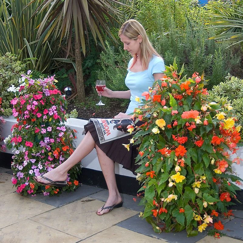 Say goodbye to limited gardening space. Vertical gardens allow you to grow a remarkable amount of plants in a smaller footprint. Perfect for space-compromised areas like courtyards, patios, terraces, balconies, verandas, and even city centre living. You can grow vegetables, fruits, herbs, and spices effortlessly. It’s an ideal solution for strawberries or creating your very own kitchen garden with our “home-grown” and “grow your own” kits. For an impressive display, simply place several Flower Towers together to create a breathtaking wall of flowers.