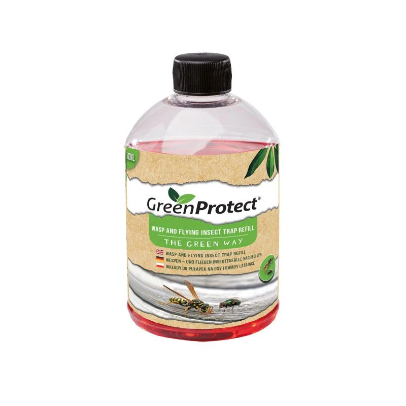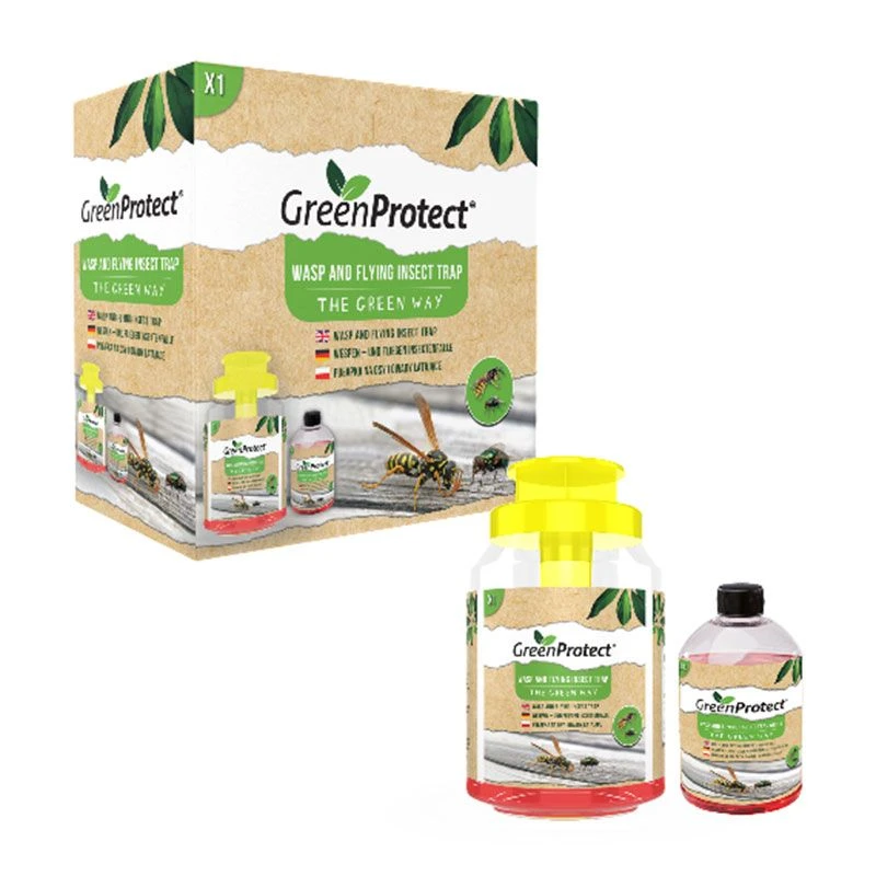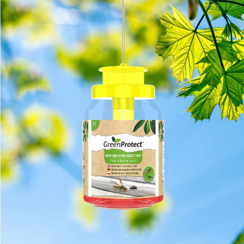 The Green Protect Wasp and Flying Insect Trap uses a non-toxic solution to detect the presence of wasps and flies in gardens. It works by attraction, drawing them away from areas where they are not wanted. This non-toxic solution does not attract bees, thanks to a special ingredient that deters bees.