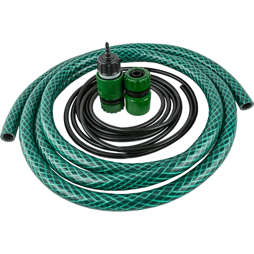 Run the 13mm hose from the tank to one of the click and connect hose fittings. Use the 13mm – 6mm reducer to connect the 13mm hose to the 6mm pipe that fits into the HR15 or HR50 humidifiers.