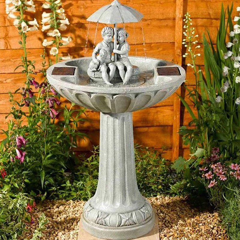 The Smart Garden Umbrella Fountain Solar Fountain is a solar water feature that looks great anywhere. This decorative solar-powered umbrella statue fountain uses the sun to power the low-voltage pump via 2x solar panels.